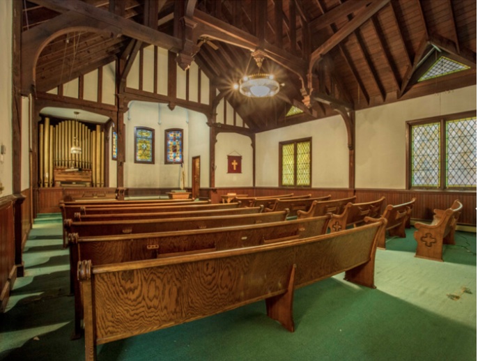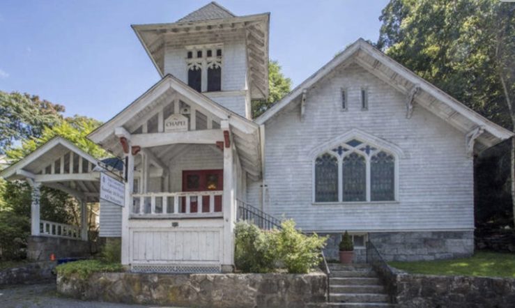 A historic Gothic Revival chapel undergoing restoration to become a destination for worship, weddings, and community events in the charming historic hamlet of Croton Falls.