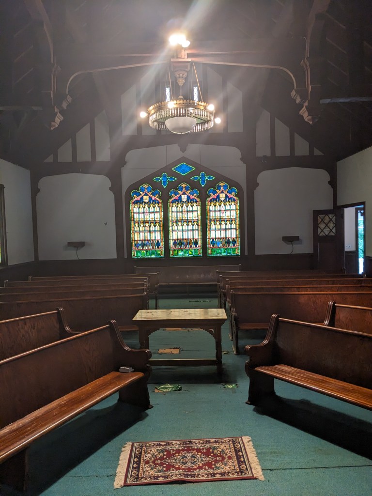 The Chapel nave has been covered with carpeting, but beneath there are beautiful hardwood floors waiting to be revealed. We are welcoming financial donations as well as donations of services to strip the carpeting and restore the hard wood.